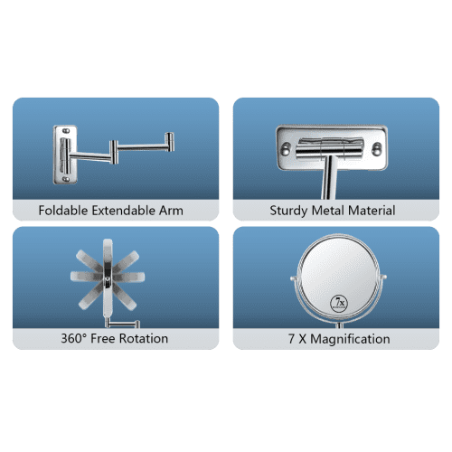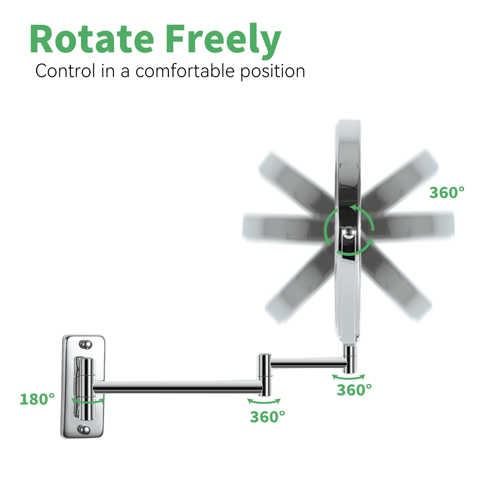 360 DEGREE SWIVELING DESIGN: This mirror features a 360-degree swivel and extension arm, which allows you to easily adjust and fix the angle of the mirror to meet different usage needs. You can freely adjust the angle and position of the mirror to enjoy a more convenient and comfortable using experience.