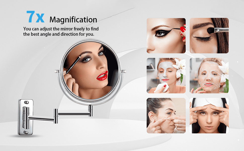 DOUBLE MAGNIFICATION FUNCTION: The mirror is equipped with 1x and 7x magnification function, which enables you to view the details of your skin in real time, whether you are performing detailed makeup or cleansing your facial skin, it provides better visual assistance.