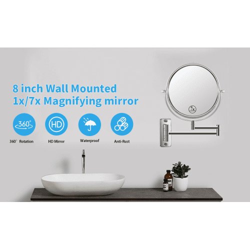 HIGH DEFINITION MIRROR: Made of high-quality metal material, this 8-inch wall mounted vanity mirror has a high-definition mirror surface that provides clear reflections, enabling you to perform tasks such as fine makeup application, hair removal and eyebrow grooming with ease.